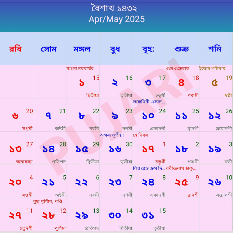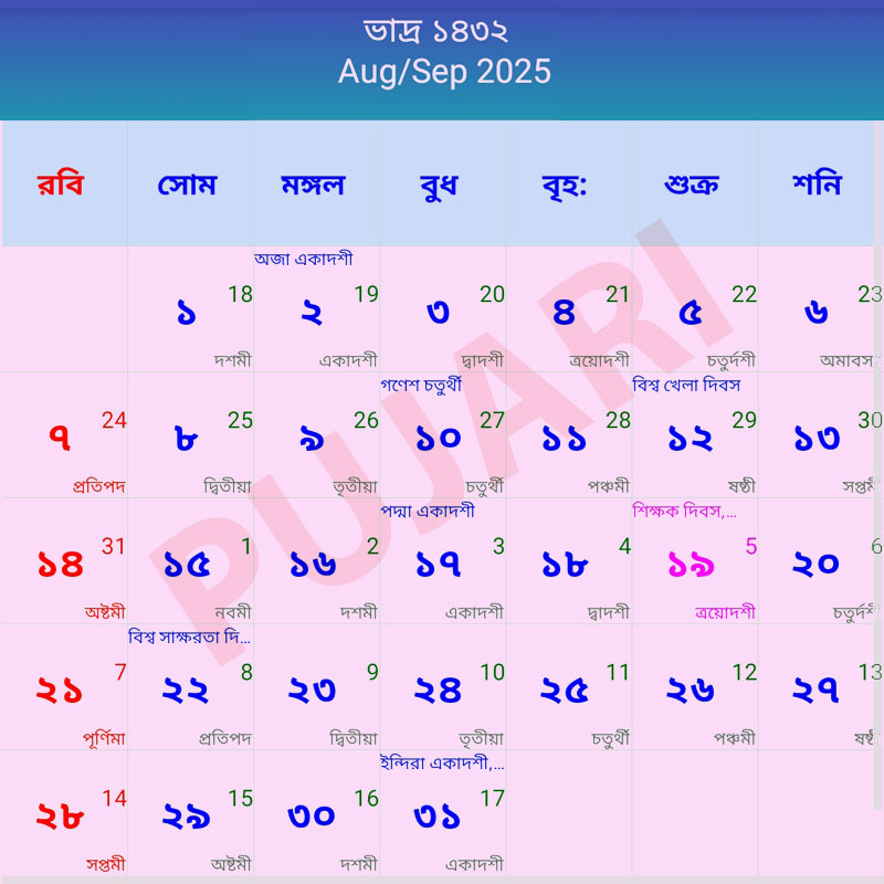 Current Bengali Calendar ১৪৩২
